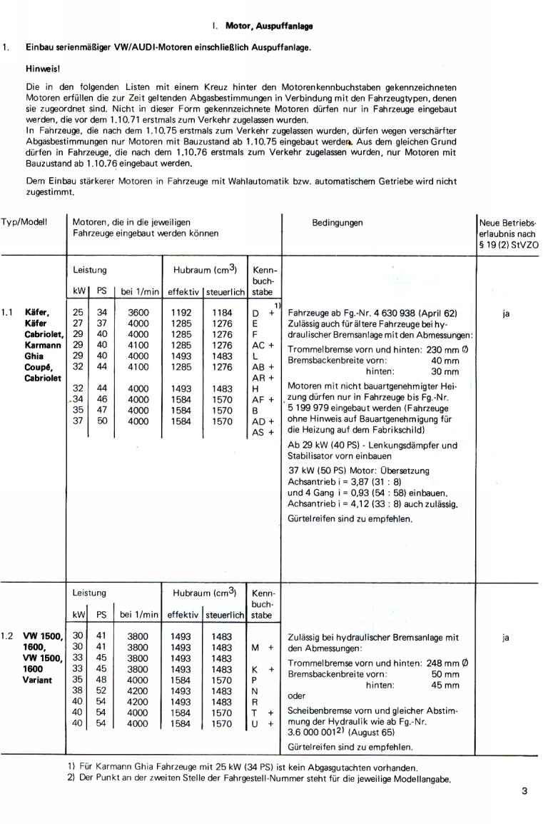 OT: Ich hätte die 1600ccm OHNE TÜV raufgemacht, merkt doch niemand. Wennst so genau bist, hast eher mit dem 34er Vergaser ein Problem, denn 31 und 34 vom Vergaser ablesen kann doch jeder Prüfer, aber zeig mir den, der die 1600ccm im eingebauten Zustand sieht. Der 1600er hätte dann 10,8mkg bei 2800 U/min gehabt (ist halt schöner zu fahren).