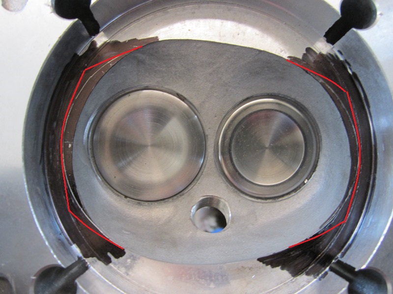 Stevo_L hat geschrieben:ist es "besser" den ringspalt komplett entlang der zylinderwand zu führen und dann oben und unten "gerade" rüber in die niere (rot) oder nur die kontur der niere erweitern und nur an einem punkt bis an die zylinderwand? (s/w angeritzt) sind 041er im rohzustand mit 39/35,5er Ventilen gewesen